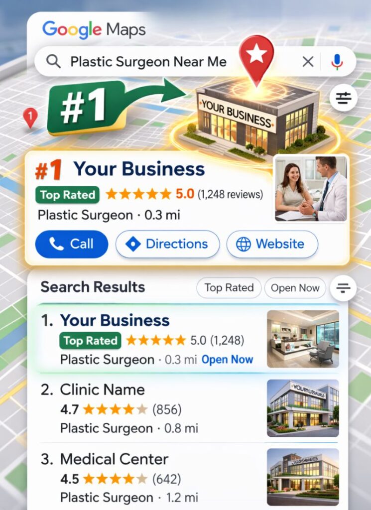 Plastic surgeon SEO is the process of optimizing your website, Google Business Profile, and online presence so your practice appears at the top of Google and AI search results when potential patients search for procedures you offer.